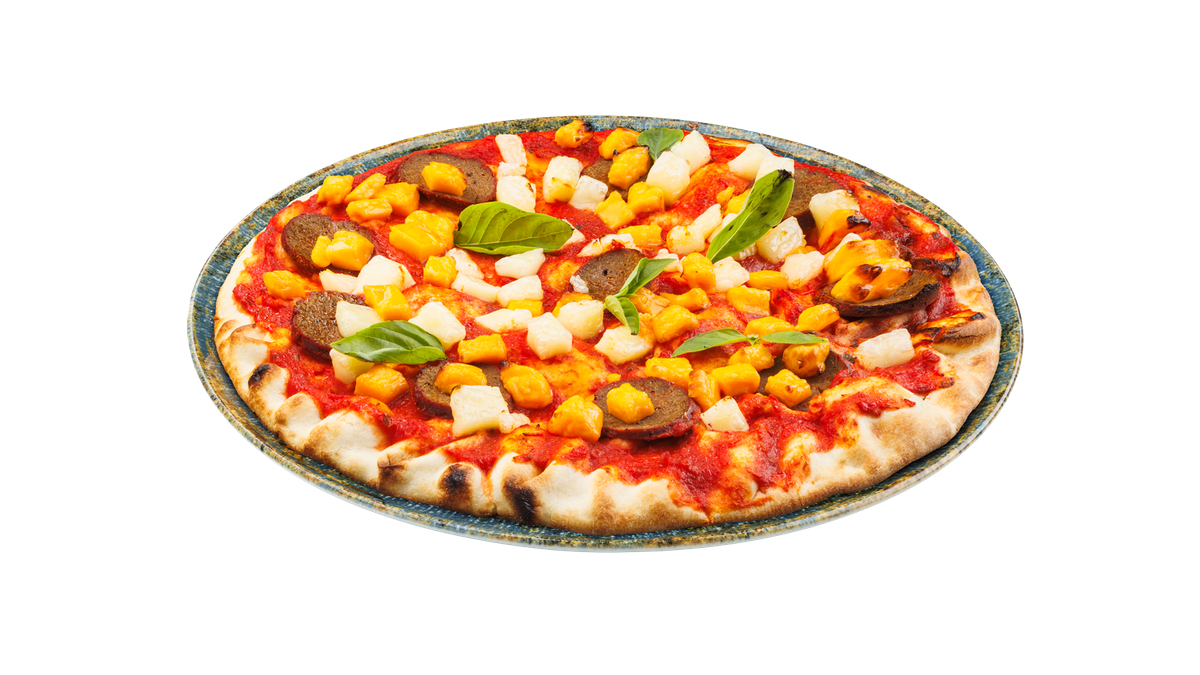 Веган Пепероне, млени домати, веган моцарела, веган кашкавал и свеж босилек - 380г