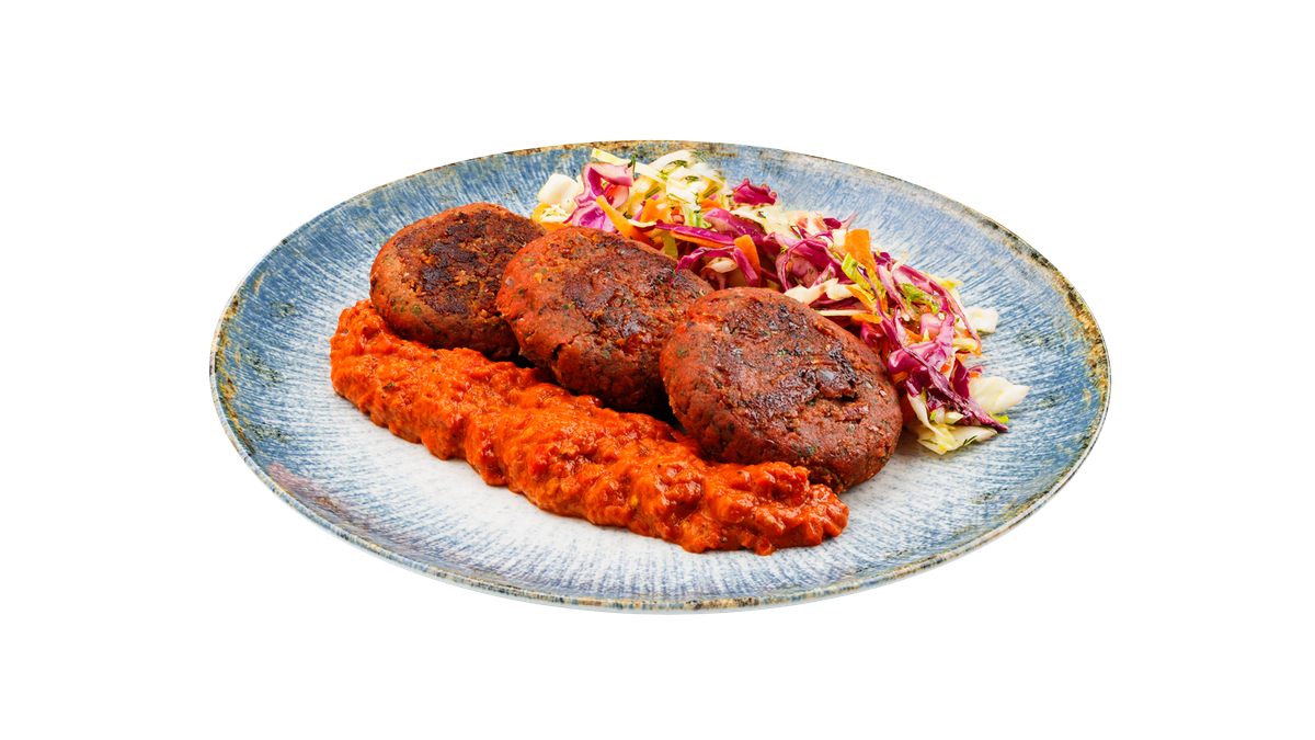 веган кюфтета с гъби, цветна зелева салата и едросмляна лютеница 400г