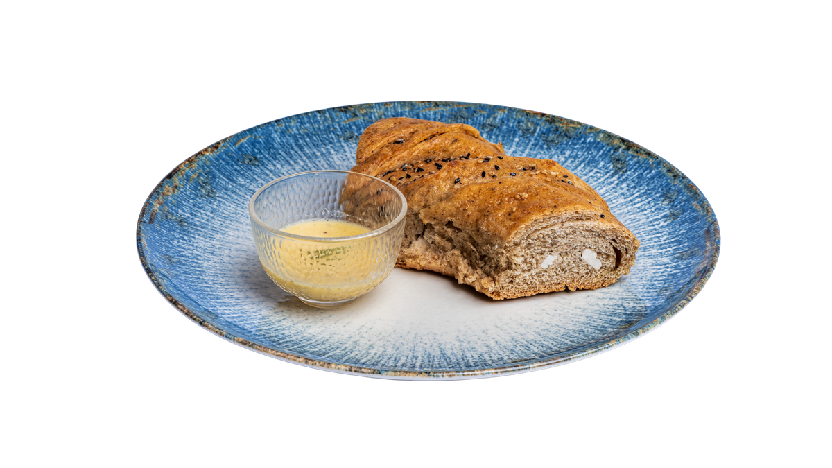 Веган тутманик с пълнозърнасто брашно, веган сирене, веган масло и сусам - 140г