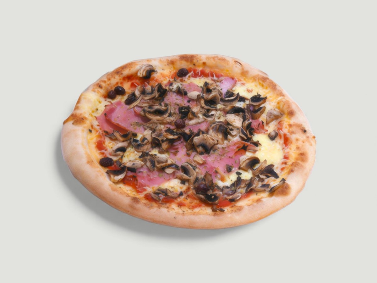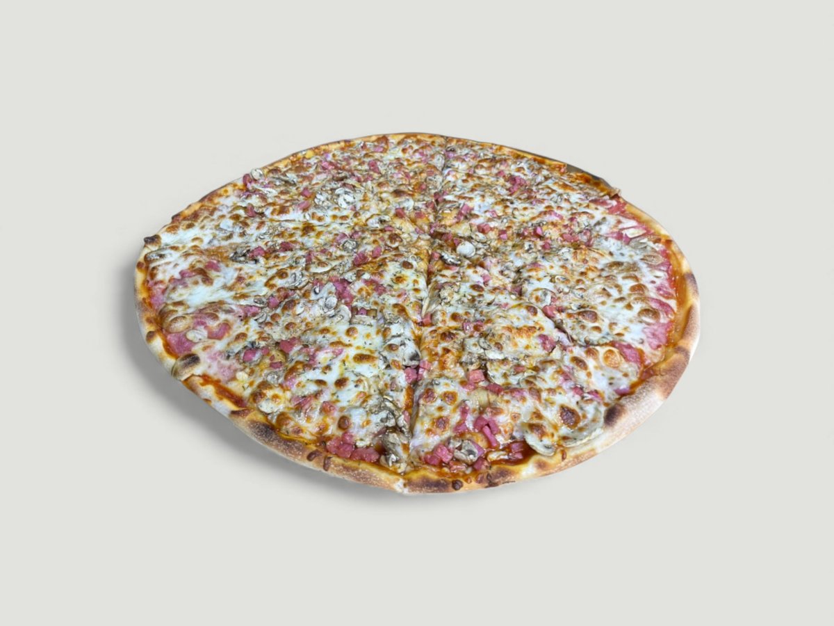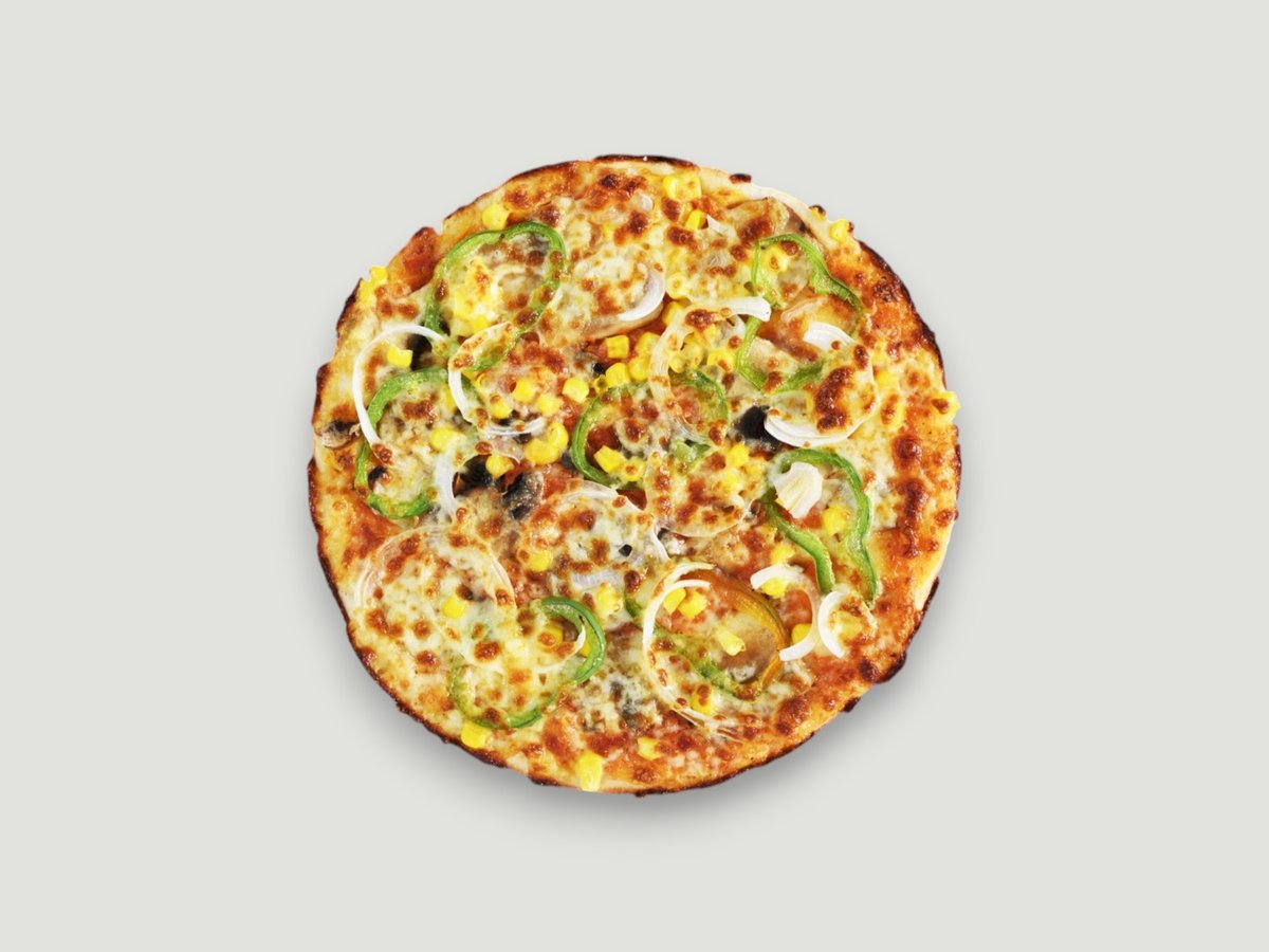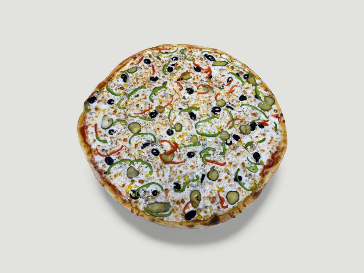 Шунка, кашкавал, топено сирене, царевица, гъби, маслини, чушки, кисели краставички