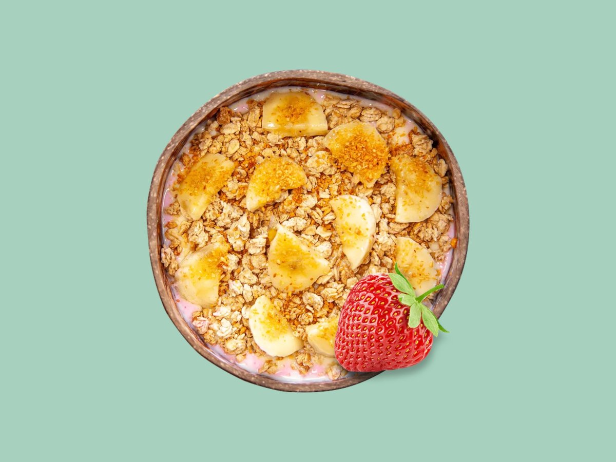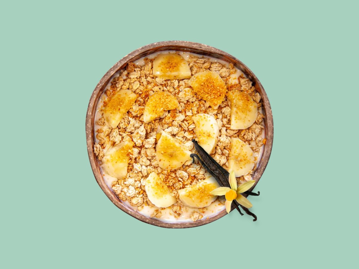 протеиново мляко, гранола, банан, (304kcal, 30г протеин, 350г)