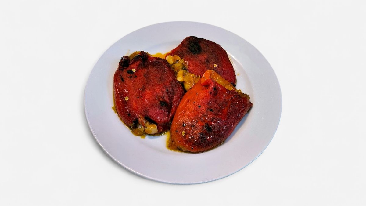 Пълнени печени червени чушки с боб и праз 300 гр.