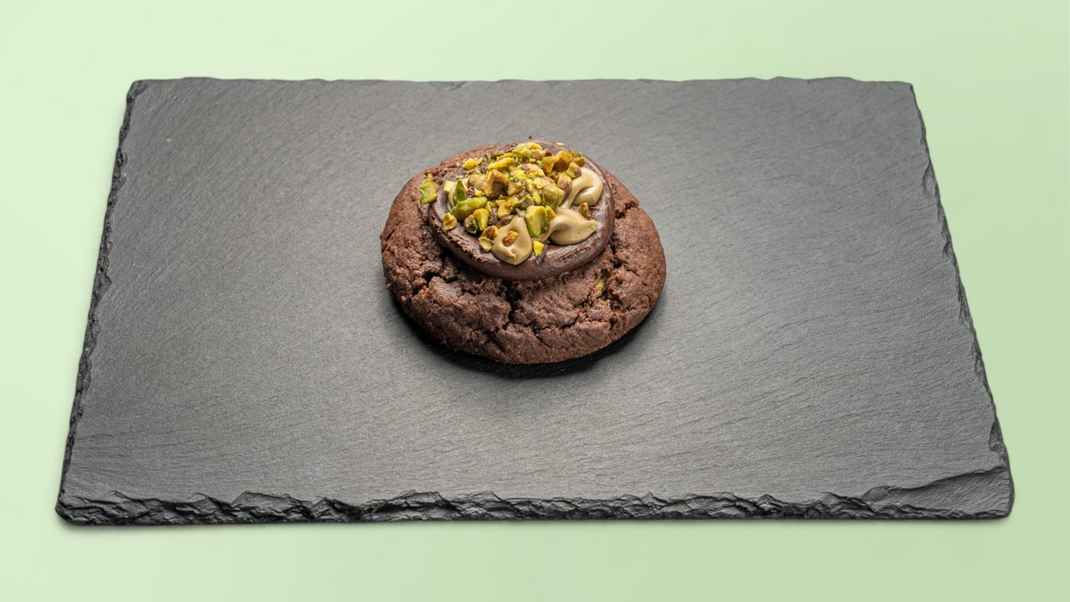 Шоколадова бисквита с пълнеж от шамфъстък крем и ганаш от черен шоколад