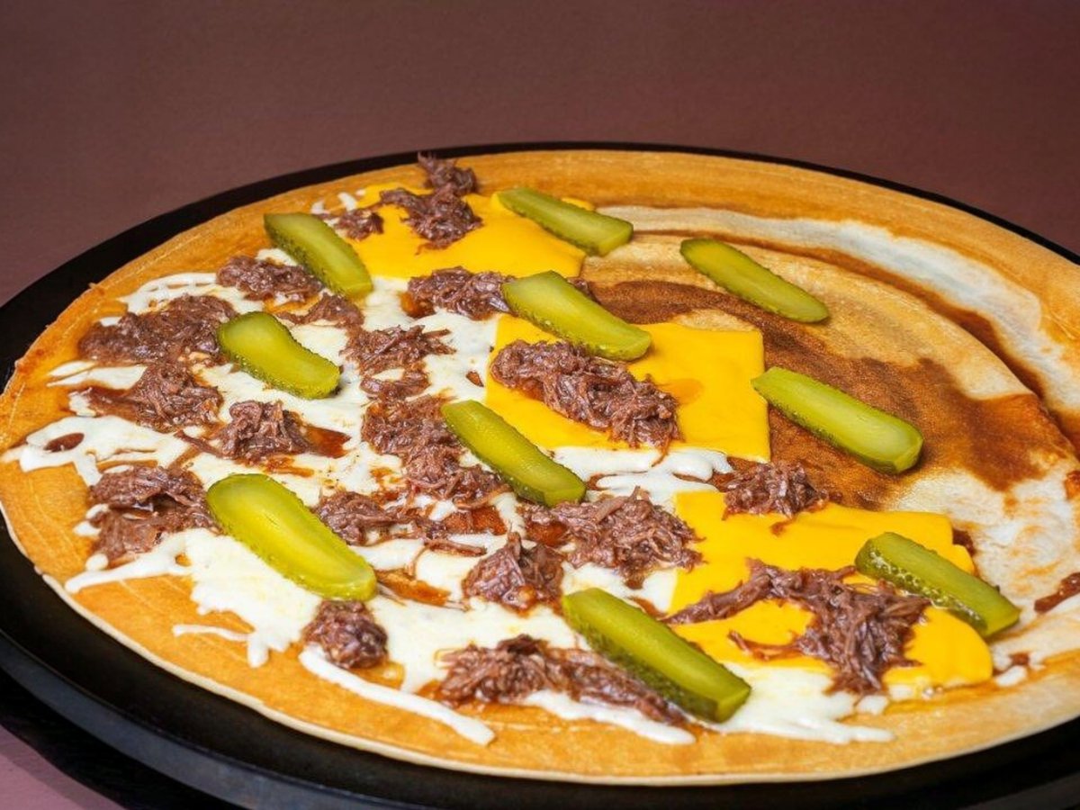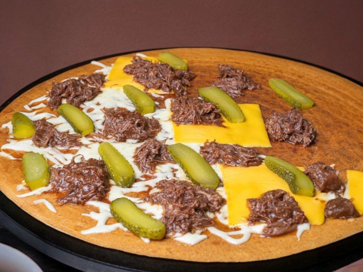 Палачинка телешко, кашкавал, чедър и кисели краставички