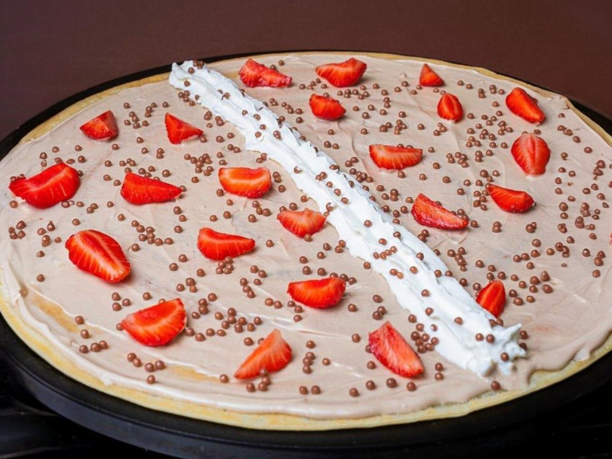 сладка палачинка с крем буено, бита сметана, пресни ягоди и шоколадово криспи 290г