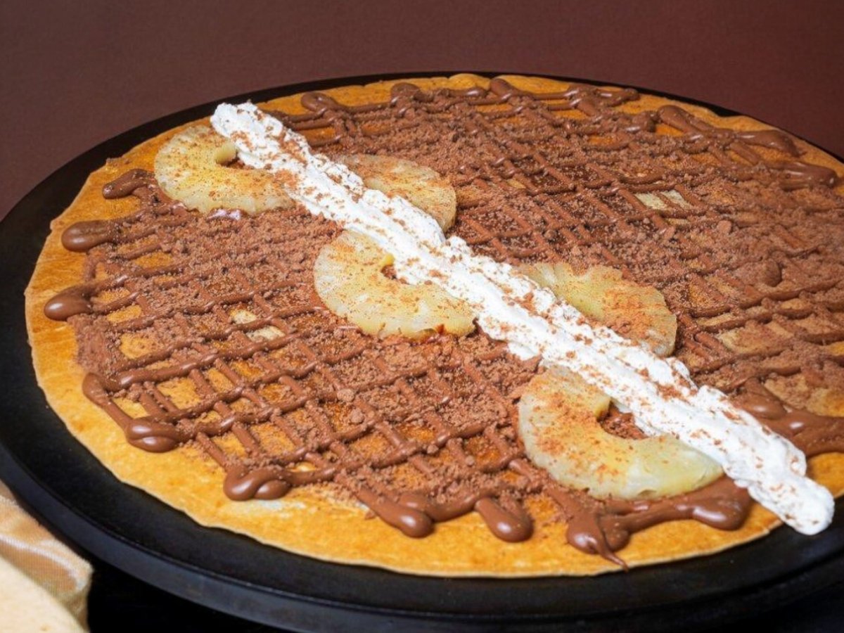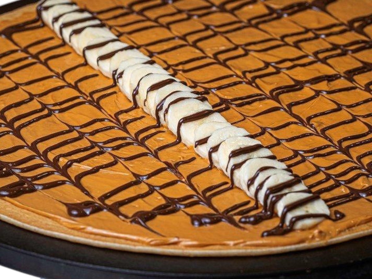 сладка палачинка с Нутела, фъстъчено масло, резенчета банан и бита сметана 340г