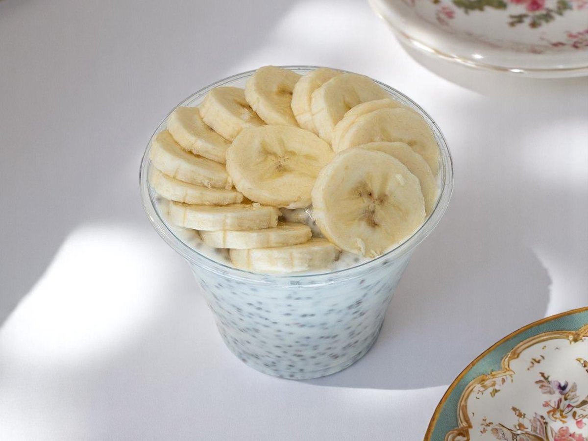 десерт с йогурт, 100% био мед, семена от чия и резенчета банан, създаден от специалистите на Pantastic Pancakes