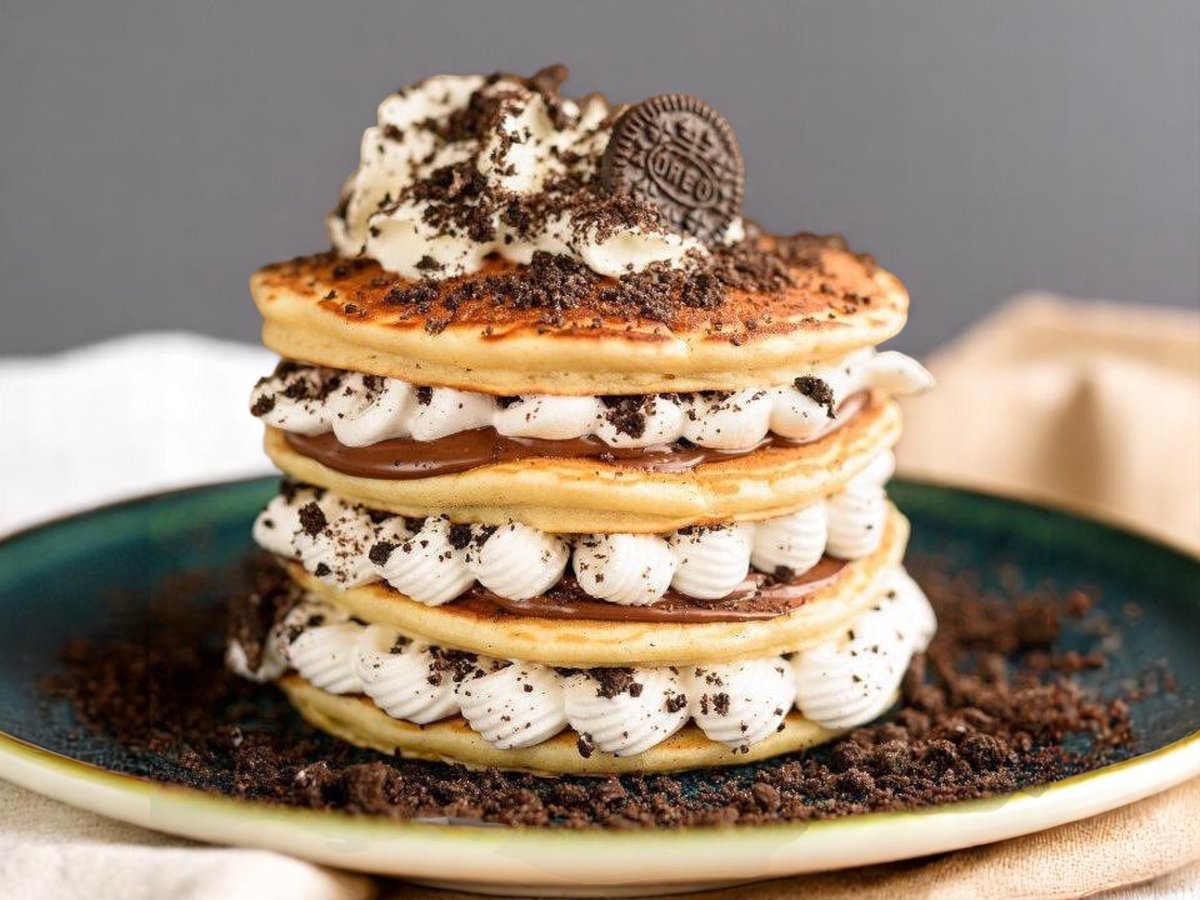 4 броя сладки американски палачинки, обилно поляти с Nutella и покрити с бита сметана и натрошени бисквити Oreo 280г