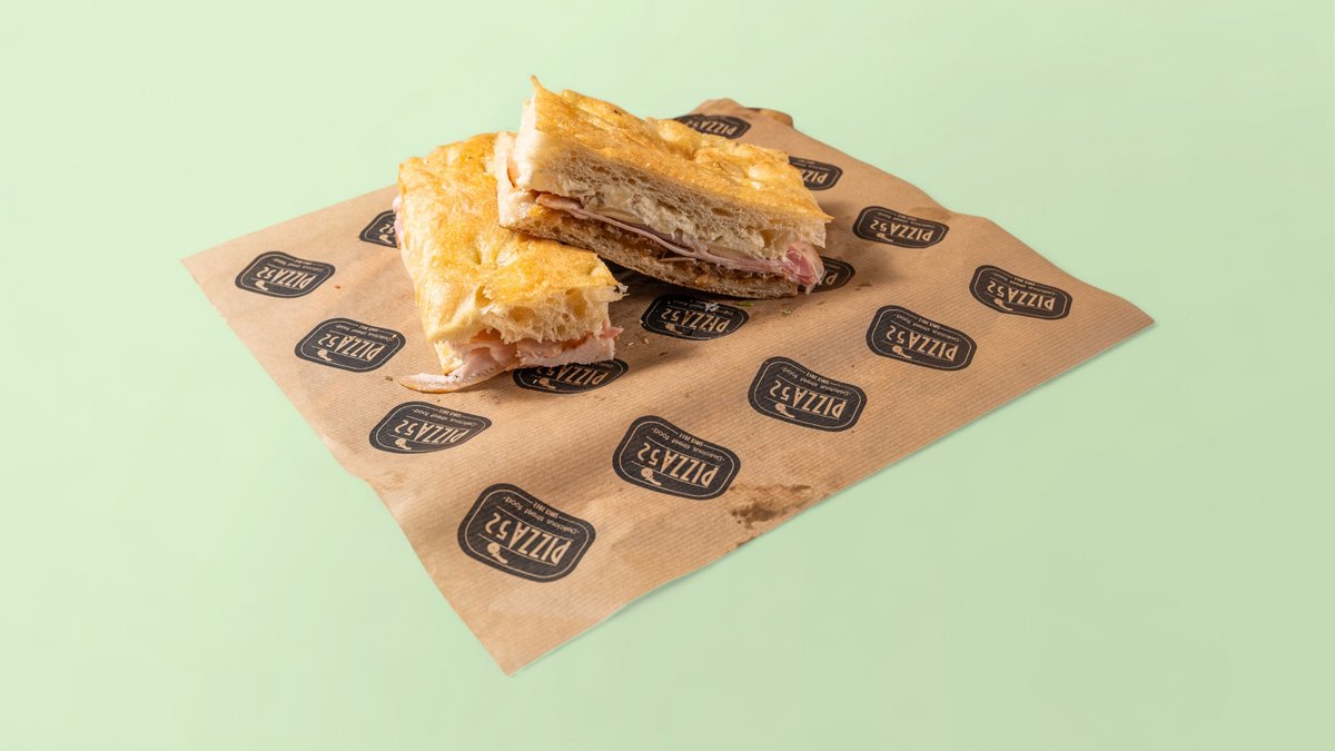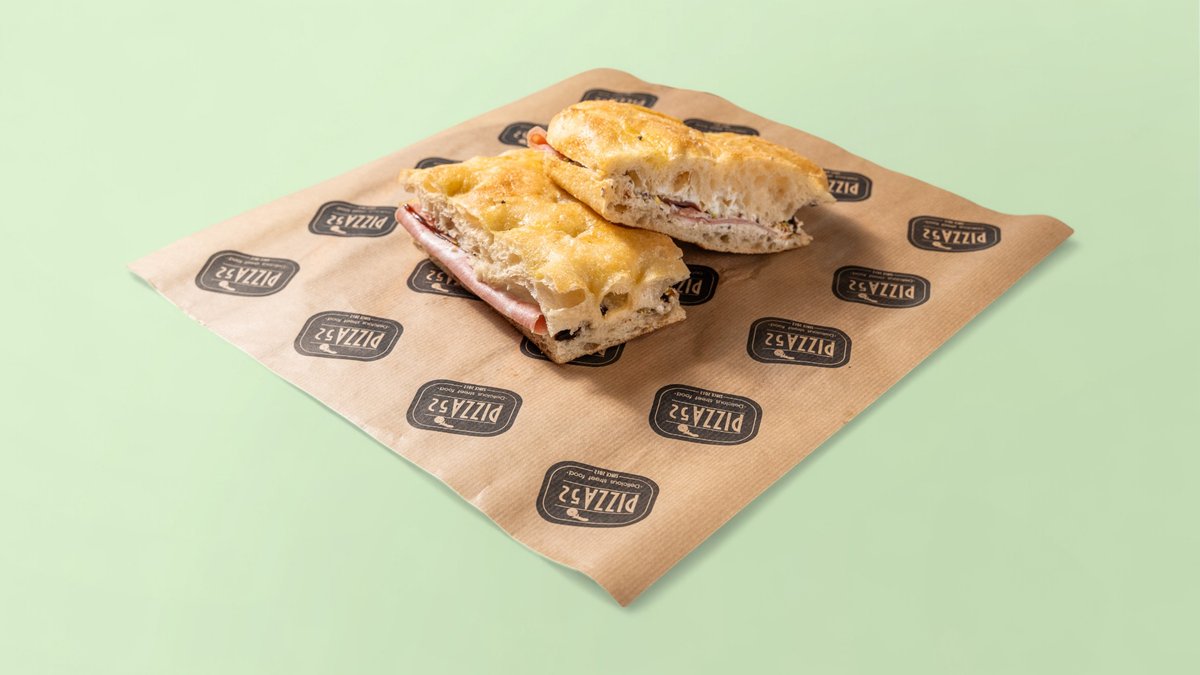 доматен сос, моцарела, шунка, гъби, риган, зехтин 250г