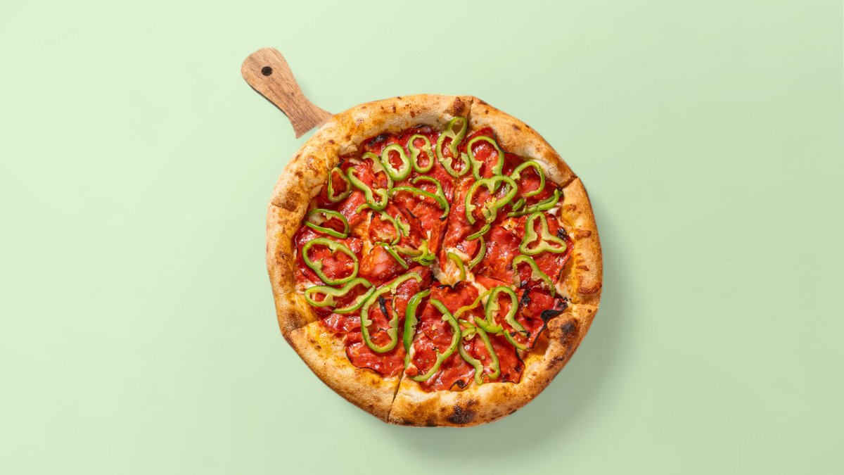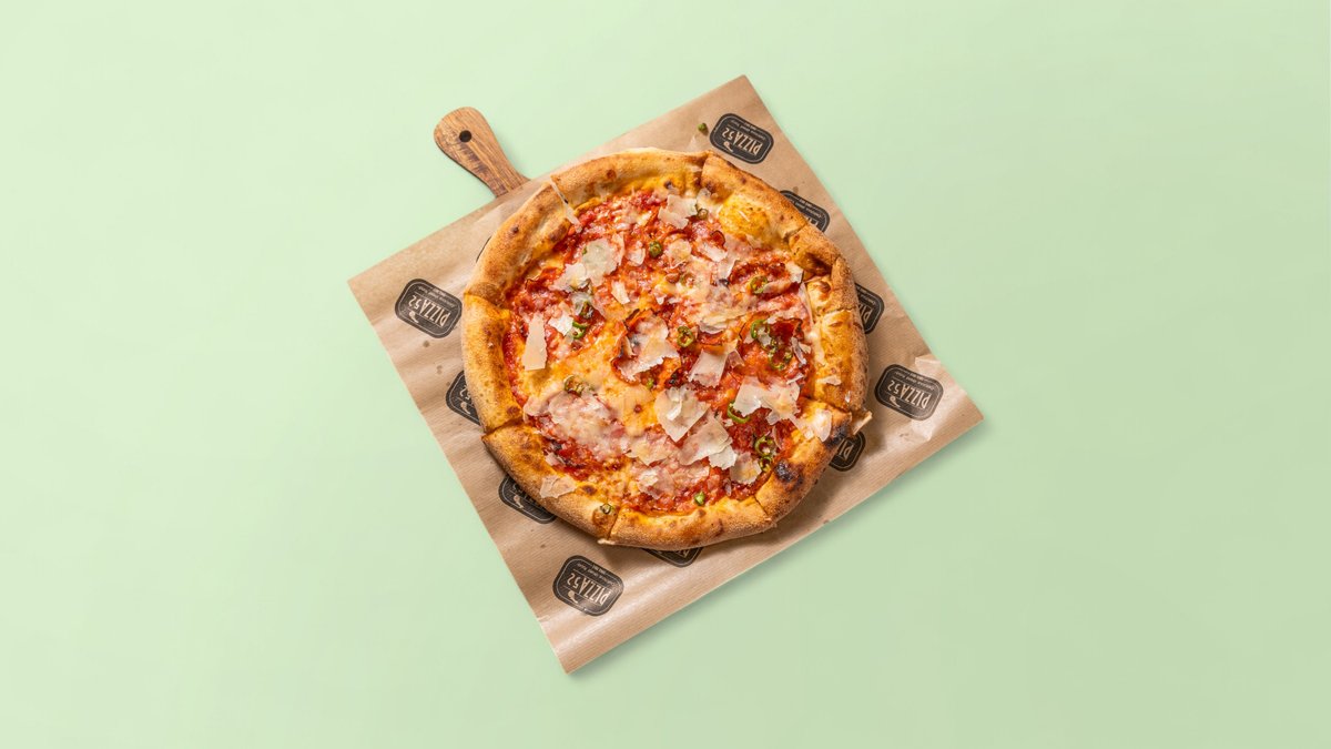 доматен сос, моцарела, пикантен салам Вентричина, люта чушка, пармезан, риган, зехтин 400г