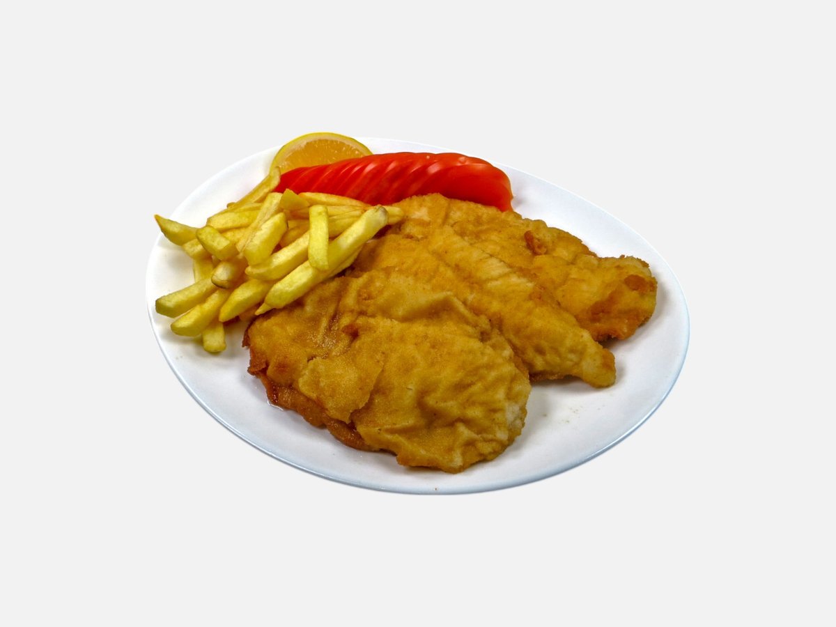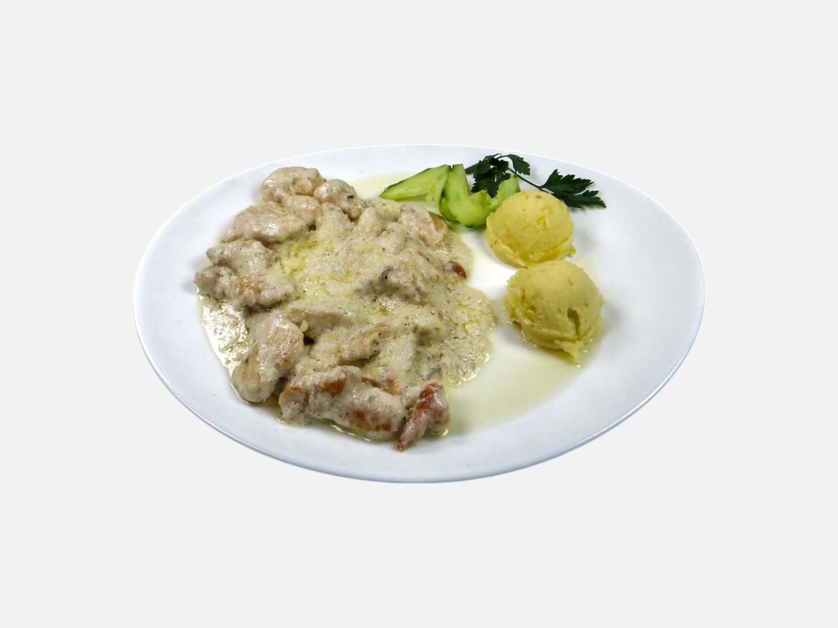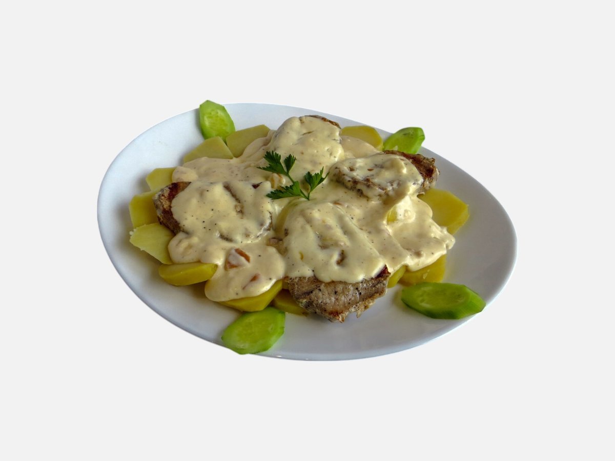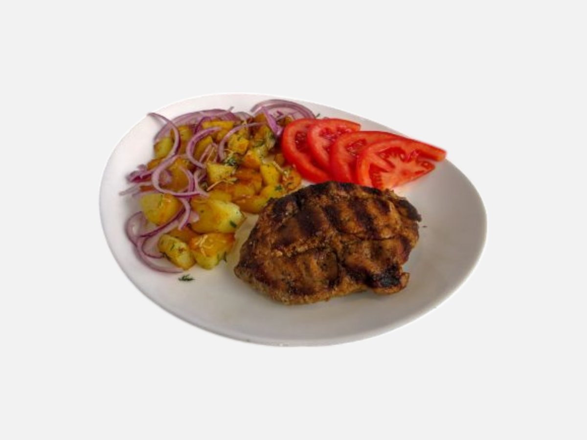 пилешка пържола от бут, картофи, сиврия, моркови, тиквички 500 г