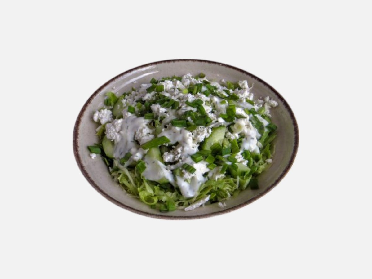 маруля, краставици, сирене, пресен лук, млечен сос, маслини 420 г