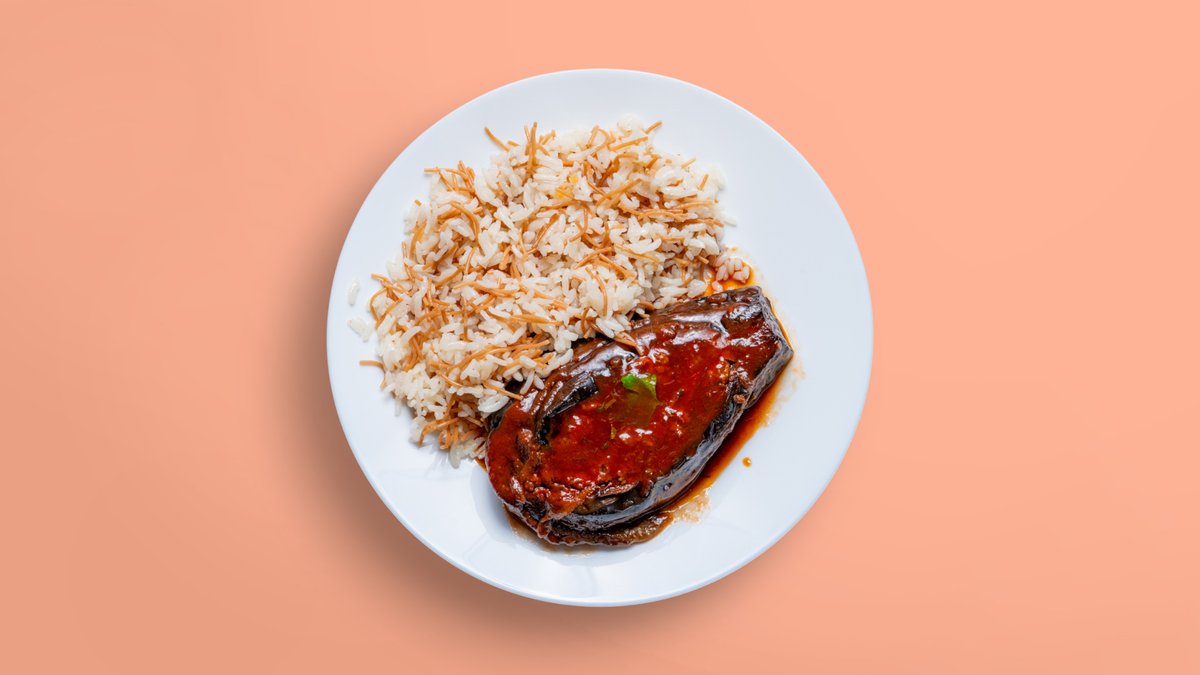 Пълнен патладжан с мляно телешко и гарантира арабски ориз