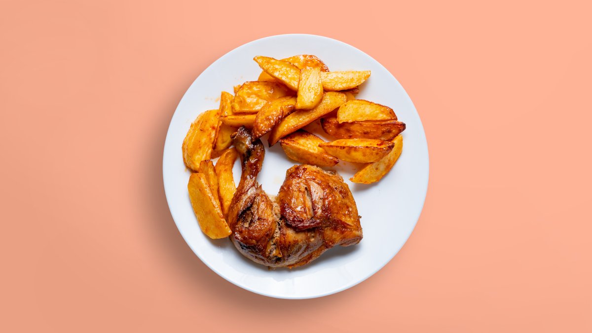 Бавно печено пилешко бутче с картофи