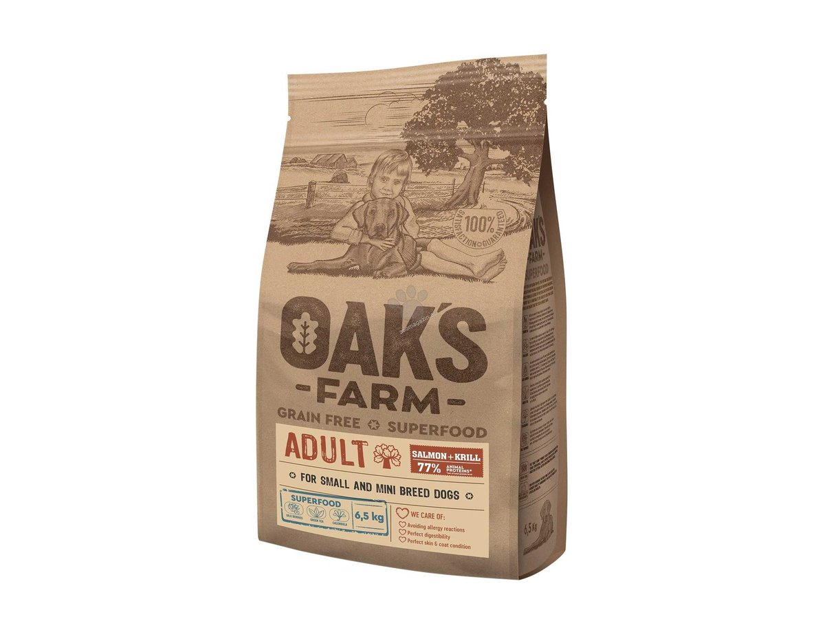 Oaks Farm Adult Salmon with Krill Small and Mini Breeds - пълноценна храна без зърнени култури със сьомга и крил за кучета от мини и малки породи 6,5 кг