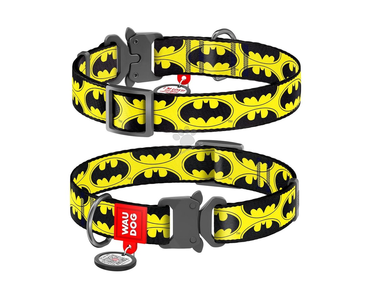 Collar WAUDOG Nylon dog collar with QR passport, Batman Logo design, metal fastex - нашийник /Ш 20 мм, Д 28-40 см/