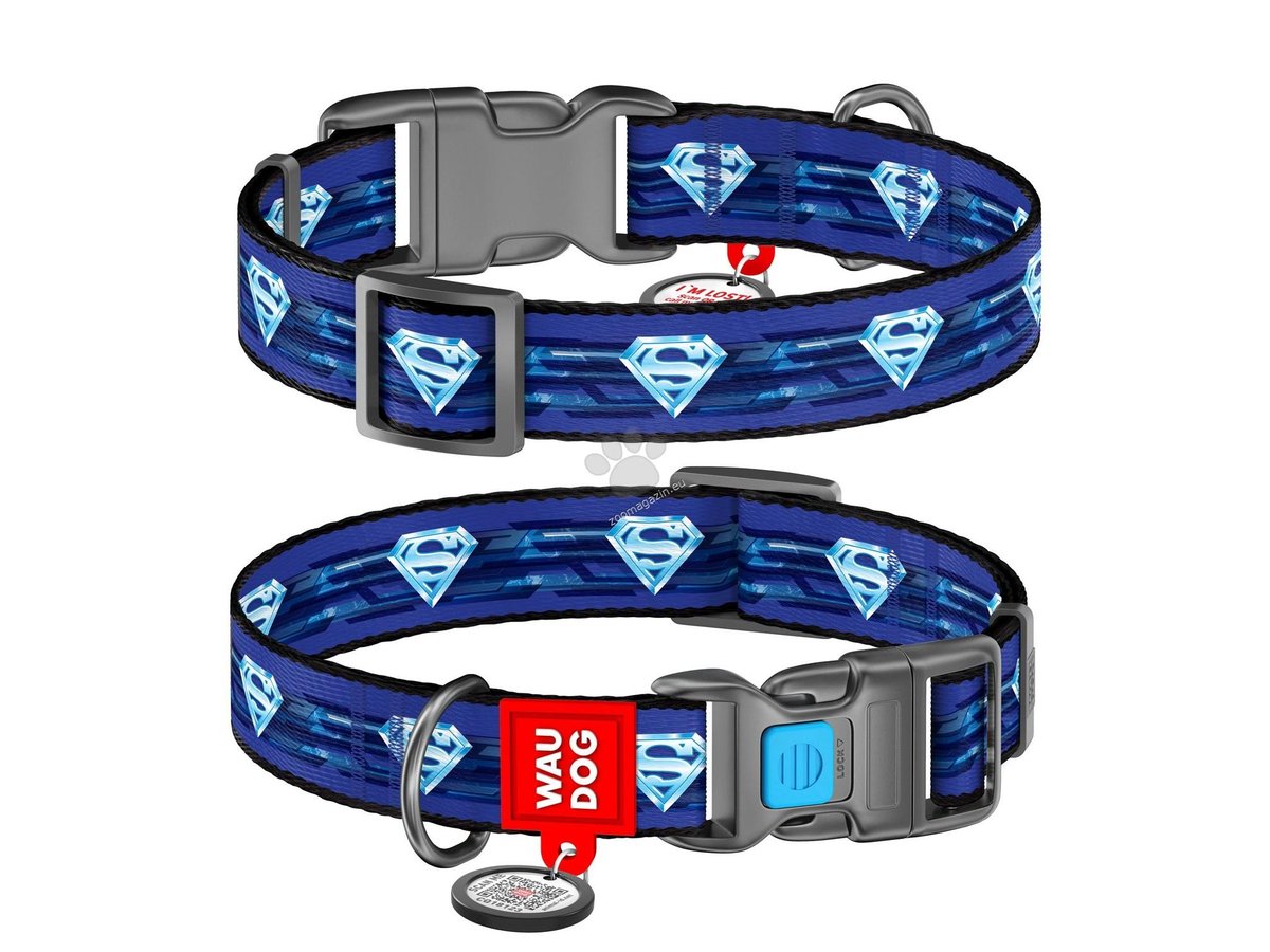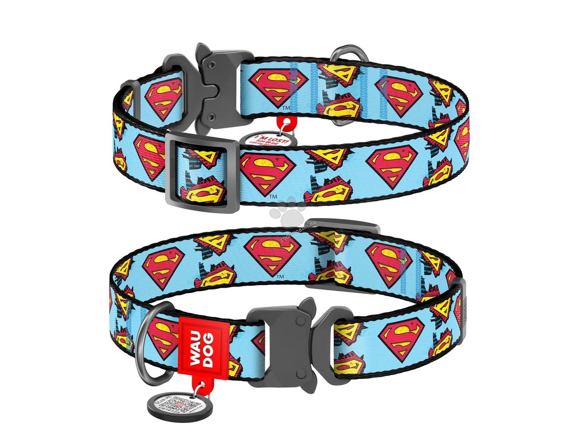 Collar WAUDOG Nylon dog collar with QR passport, Superman design, metal fastex - нашийник /Ш 25 мм, Д 33-49 см/