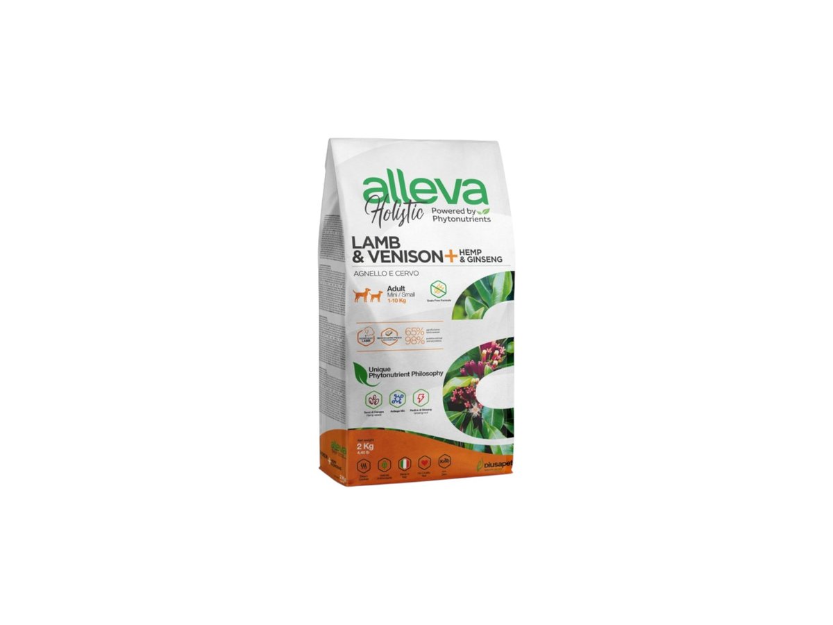 Насипна храна, Храна за кучета Alleva Holistic Adult Mini с агнешко и еленско месо и с Канабис Сатива и Женшен, 2 кг.