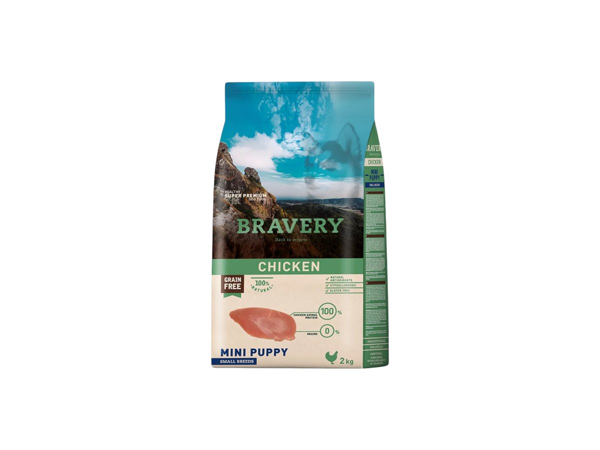 Bravery Chicken Mini Breeds Puppy - Пълноценна храна подрастващи кученца от дребни и мини породи с пилешко 2 кг