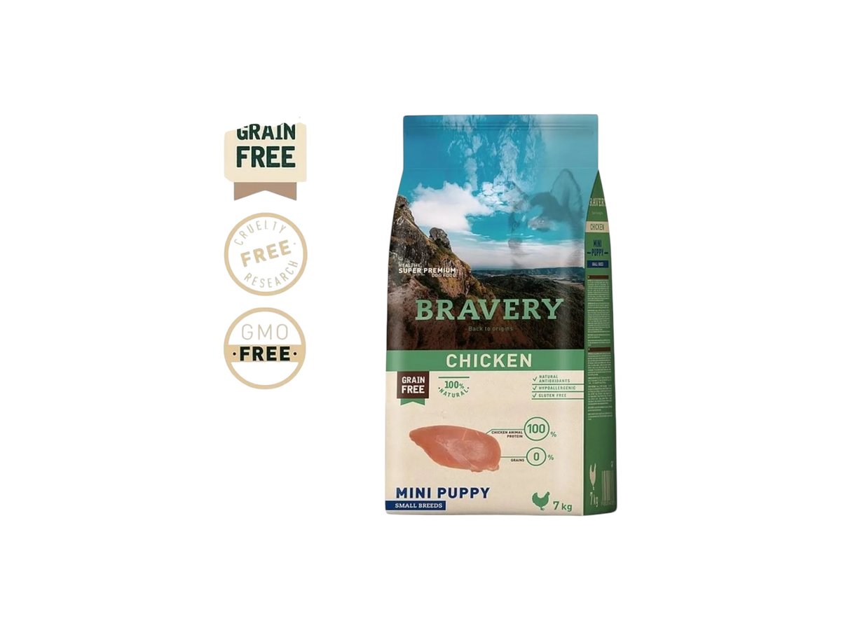 Насипна храна, Bravery Chicken Mini Breeds Puppy - Пълноценна храна подрастващи кученца от дребни и мини породи с пилешко 7 кг