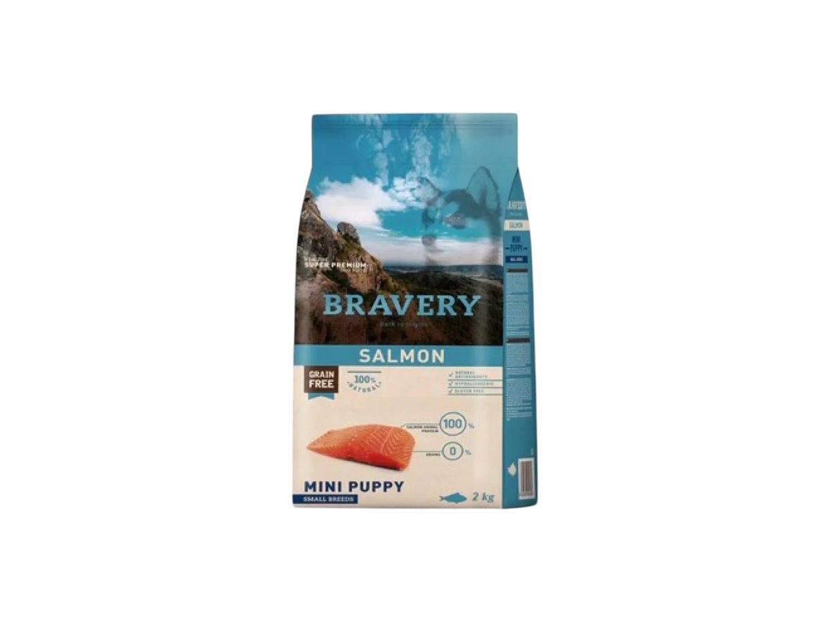 Bravery Salmon Mini Breeds Puppy - Пълноценна храна подрастващи кученца от дребни и мини породи със сьомга 2 кг