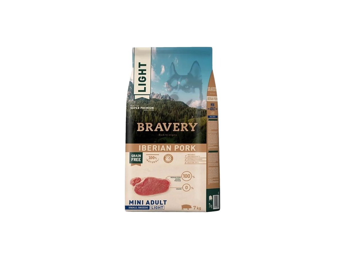 Насипна храна, Bravery Light Iberian Pork Small & Mini Breeds Adult Dog - Пълноценна храна за израснали кучета от дребни и мини породи с иберийско свинско 7 кг