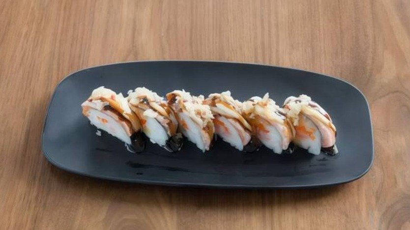 филаделфия, манго, авокадо, тобико, скарида, сьомга, японска майонеза, унаги, сладко чили, стърготини.