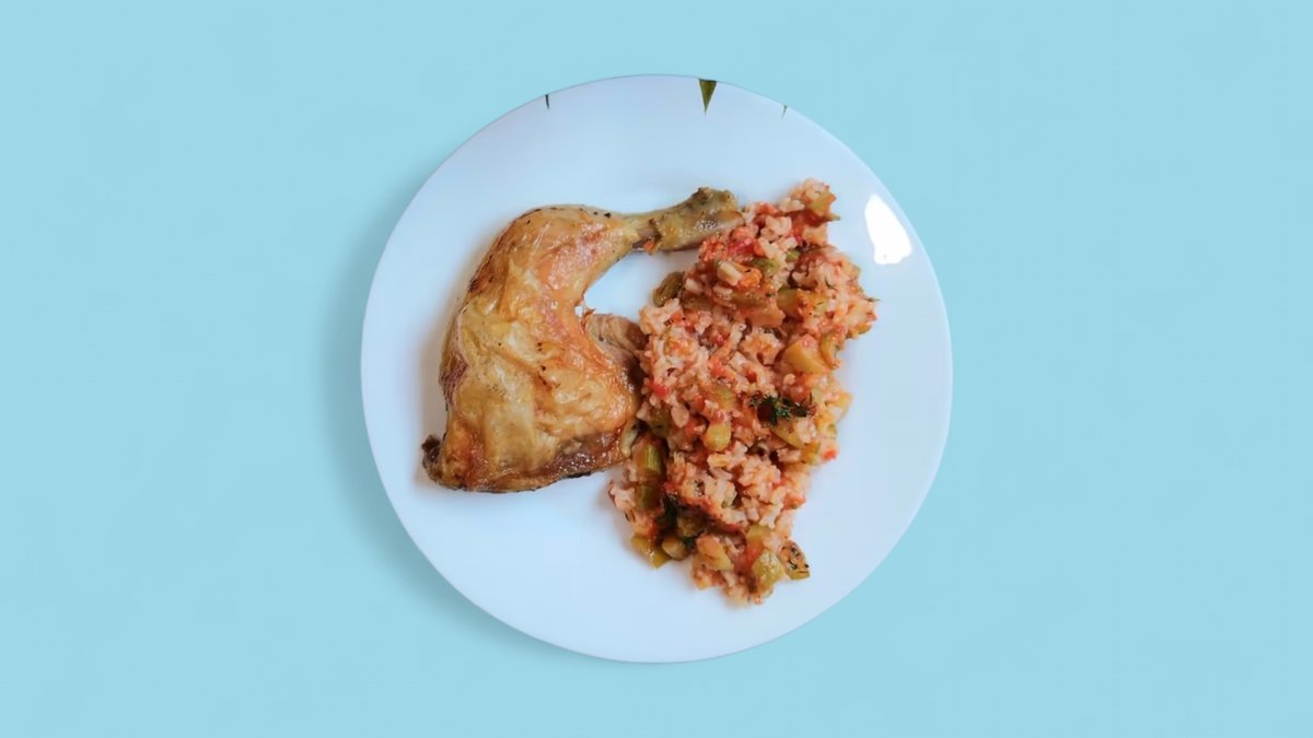 Пилешко бутче с ориз с тиквички