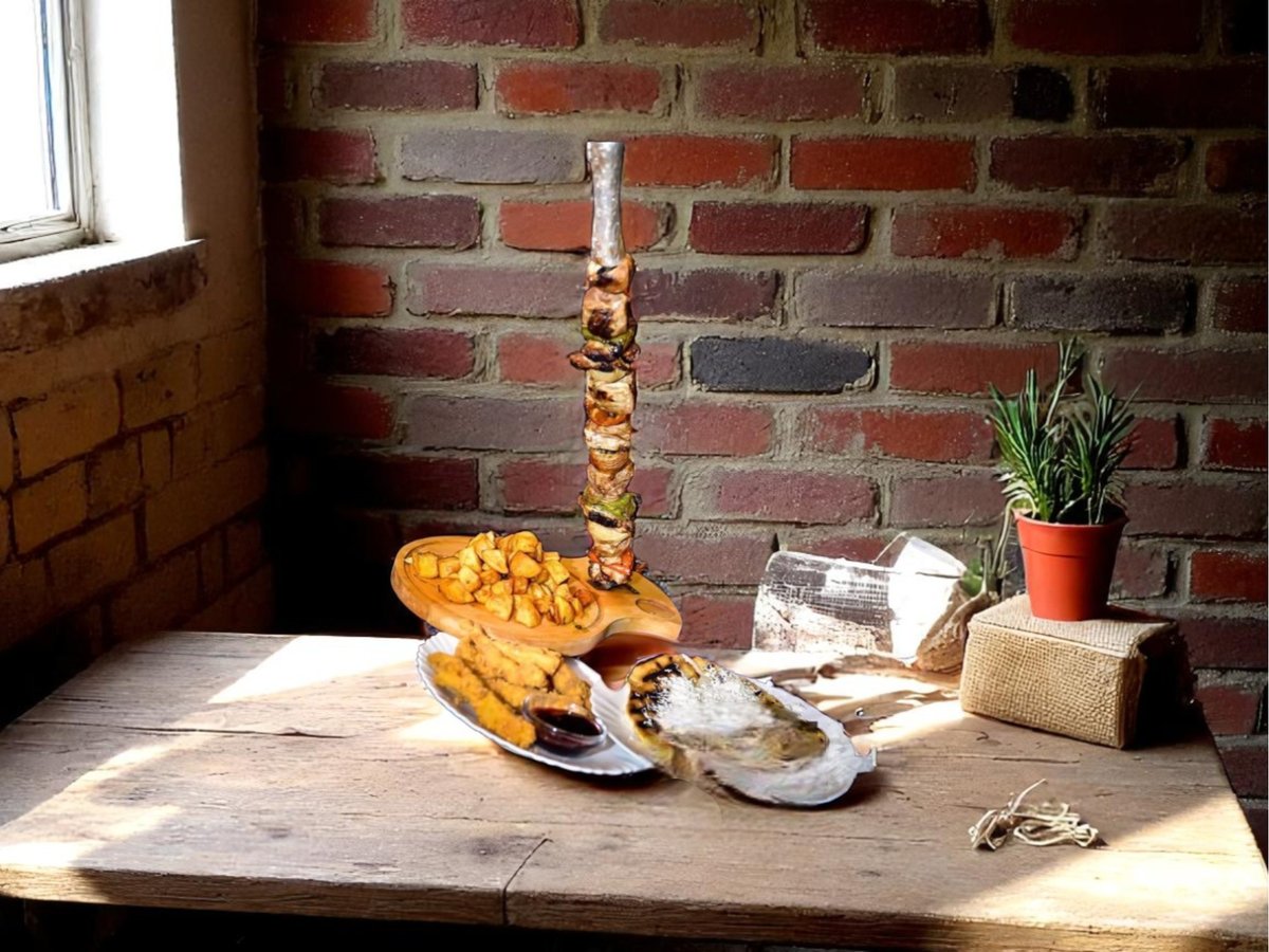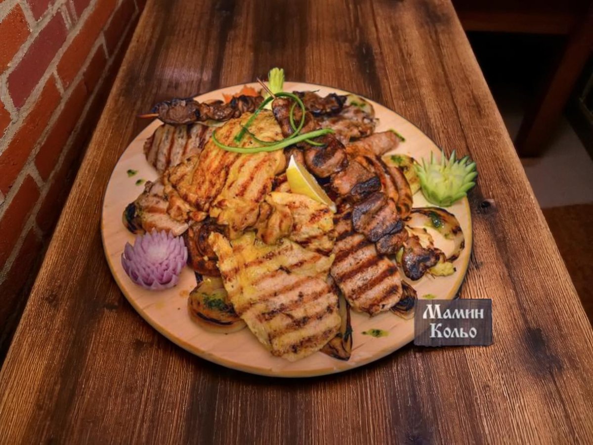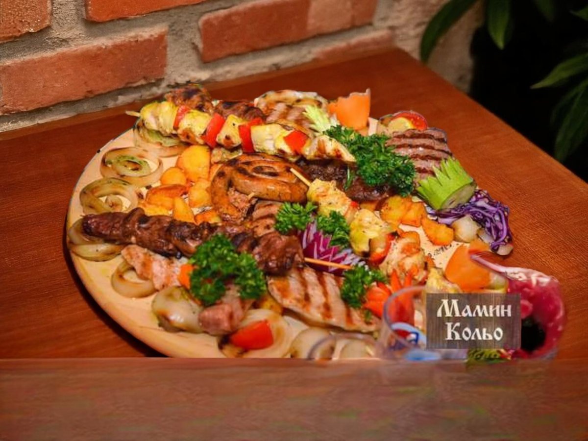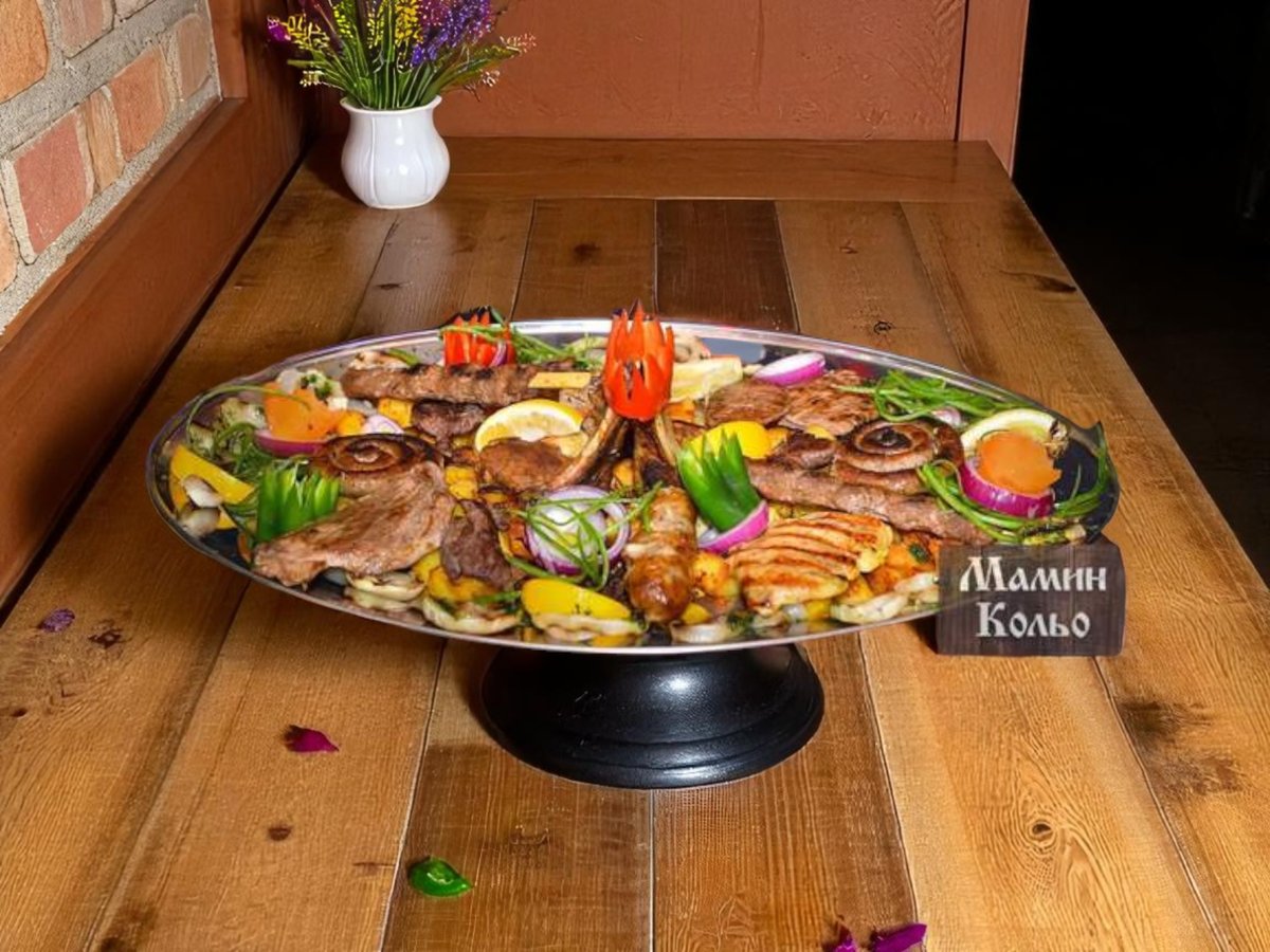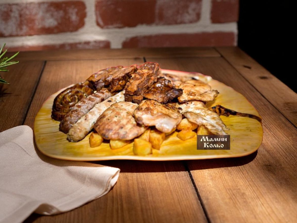 телешки джолан, телешки карета, 4бр. телешки кюфтета и кебапчета, телешки суджук, 26р. телешки шишчета, картофи, печен лук 1900г