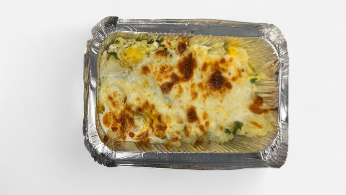спанак, картофи, сметана, чесън и сирене, запечени до златисто с кашкавал