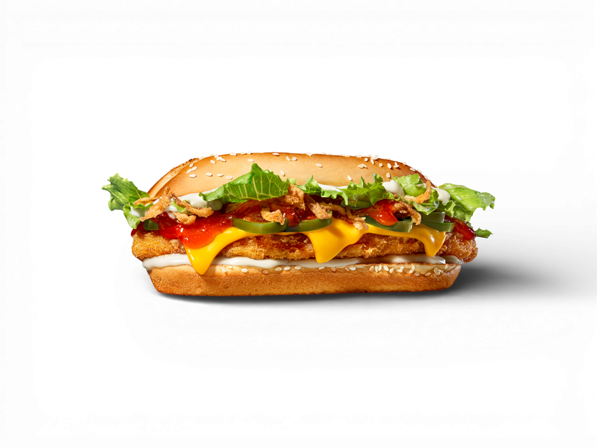Малък на вид, голям на вкус. Хрупкаво пилешко филе с домати, айсберг салата и майонеза в мека 4-инчова питка. Всичко, което обичаш в един бургер — хрупкавост, кремообразност и страхотен вкус. 183г