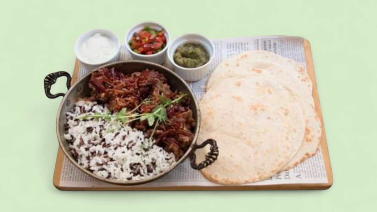 приготвени в латино стил сладки картофи с червен боб и маринован червен лук, поднесени с 5 тортили и салси Рісо de gallo, salsa verde, сметана 400г