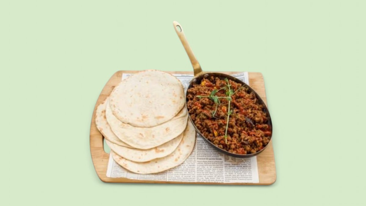 приготвена в латино стил пикантна телешка кайма, с червен боб, царевица, халапеньос и 5 броя тортили 300г