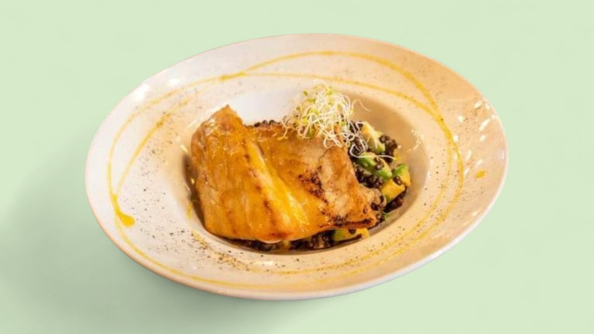 филетиран див лаврак понесен върху ризо от леща Белуга 350г