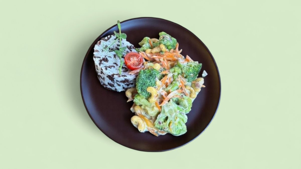 броколи, моркови, черен ориз, червен лук, джинджифил, кашу, кокосово мляко 300г