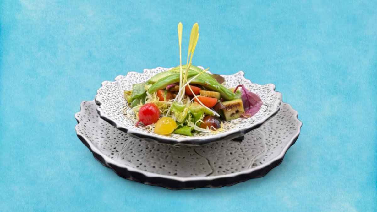 Нежно подбран микс от листи салатки с предварително мариновани в средиземноморски подправки и термично обработени зеленчуци положени на основа от бяла и черна киноа и завършена с бутче от патешко конфи и портокалов дресинг, 360г
