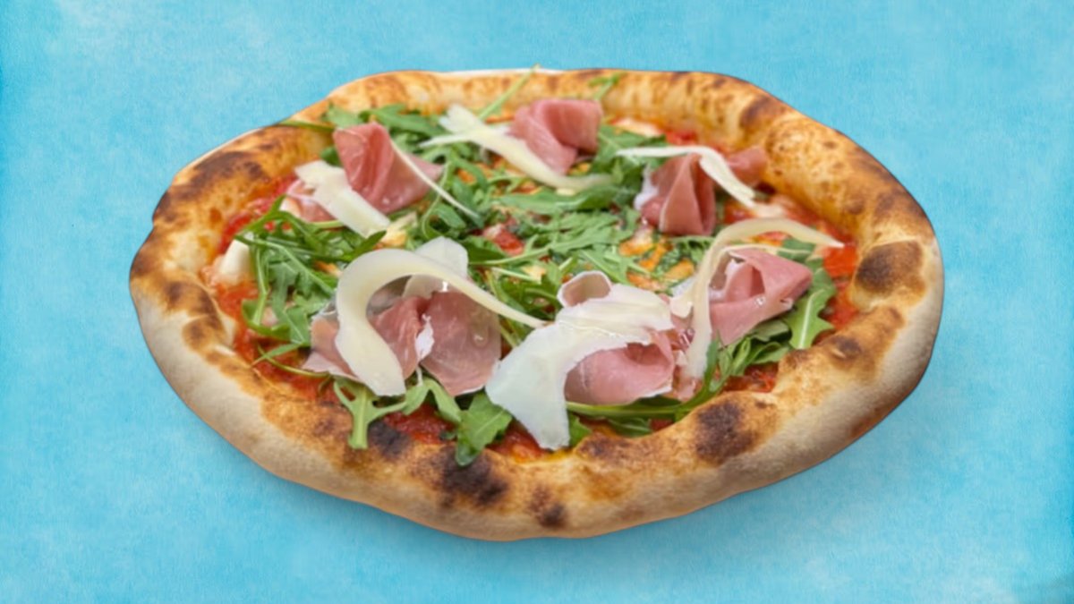 Доматен сос Сан Марцано биволска моцарела прошуто Крудо от регион Ди Парма завършена с люспи от Грана Падано и прясна рукола, 350г