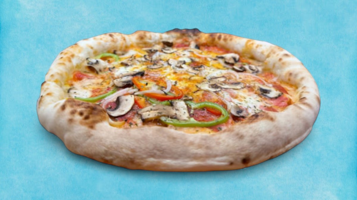 Използваме нашият доматен сос от полски домати Сан Марцано, моцарела суха, и градински зеленчуци: гъби, воден лук, пипер, маслини, чери домати завършекът е с риган и зехтин, 400г