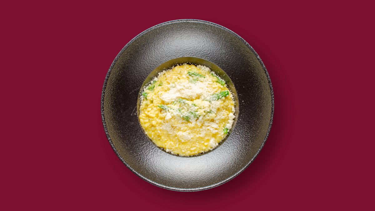 с Пармезнова коричка, сотирани аспержи, чери домати и билки 320г
