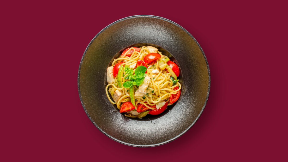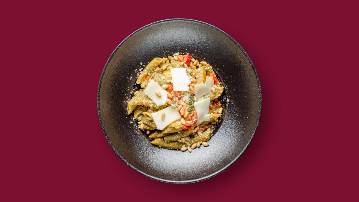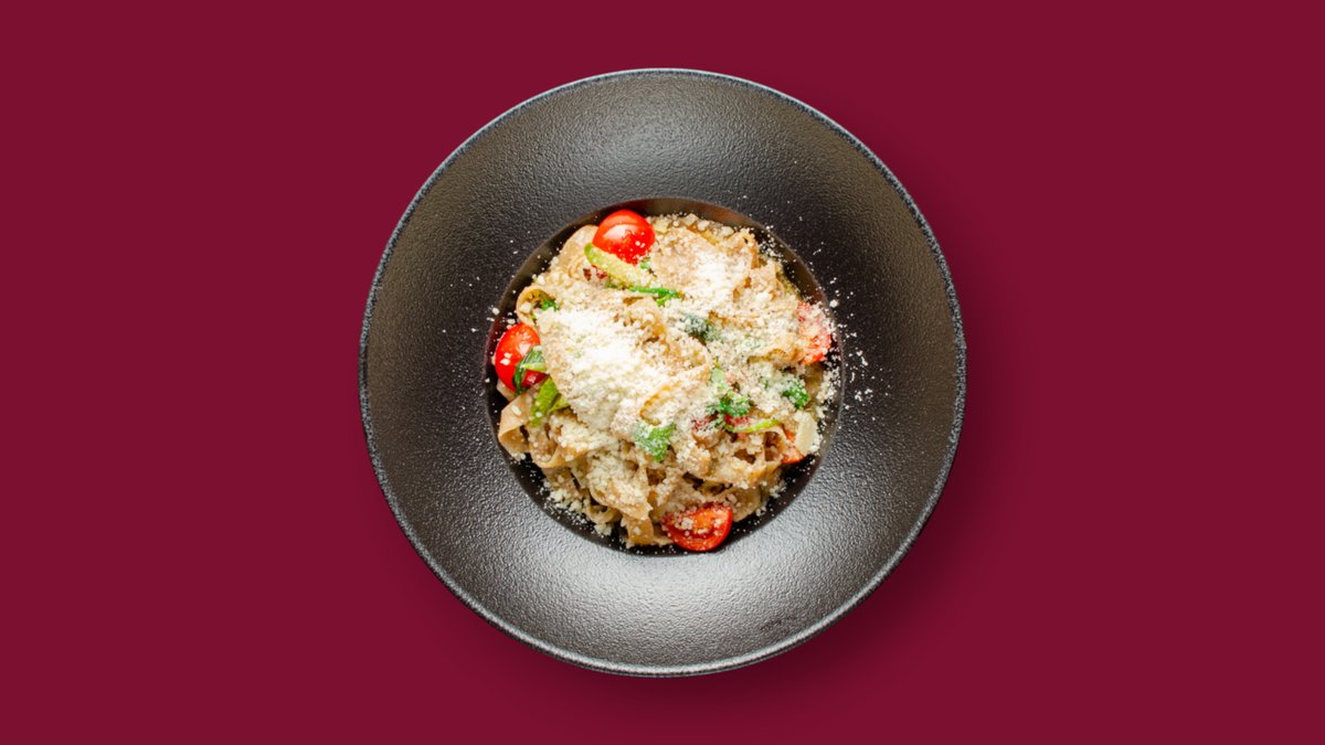 Пълнозърнеста паста с тиквички, рукола, босилек и чери домати