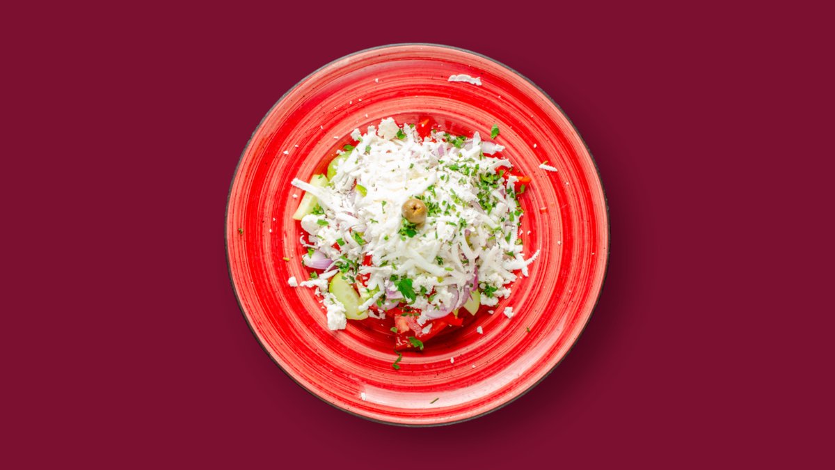 червен лук, чери домати, авокадо и бонбони от сирена 300г