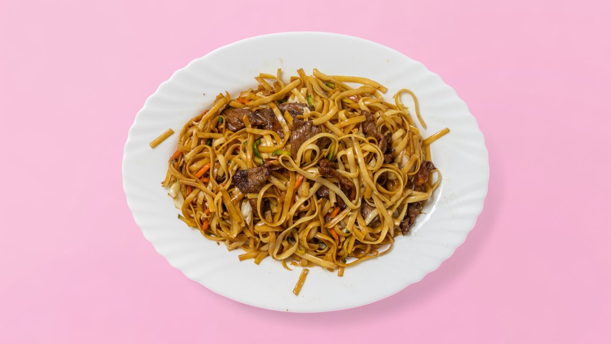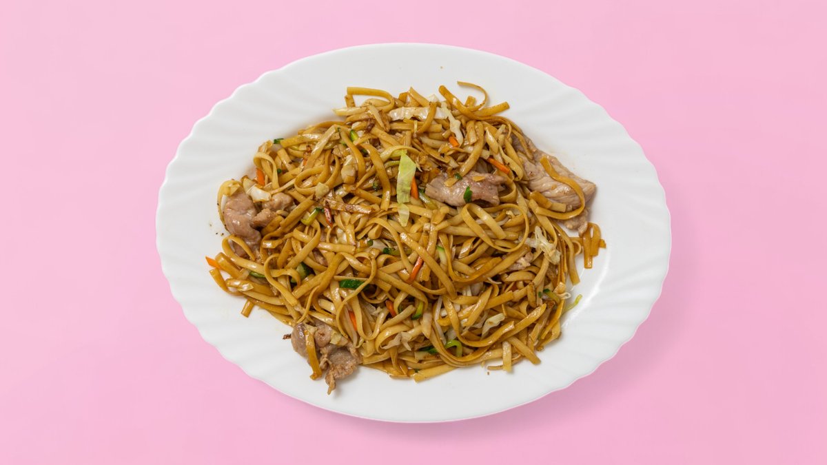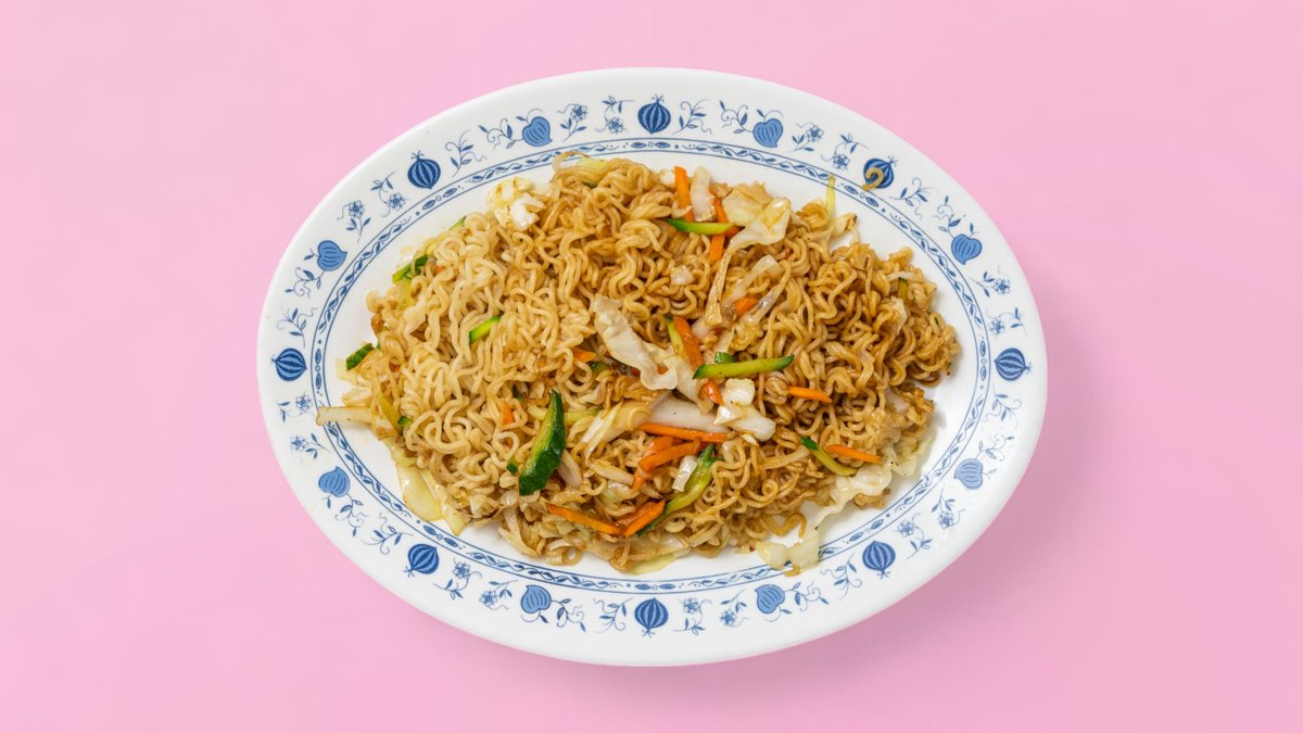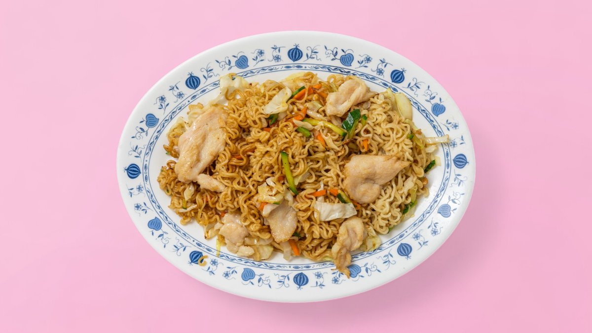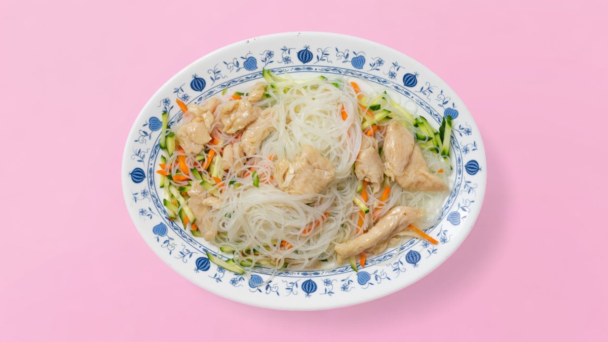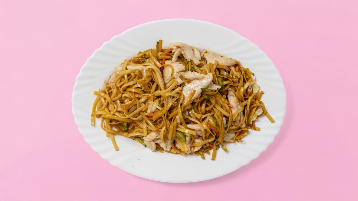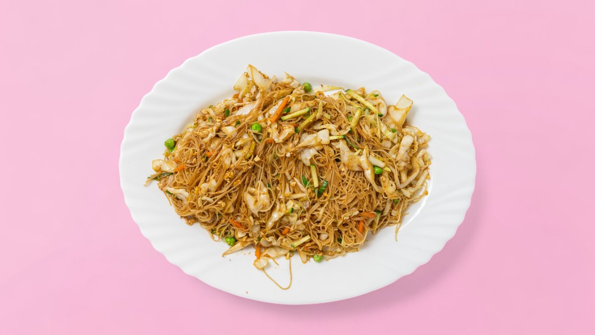 1730. Пържени оризови спагети с пилешко месо, яйца и зеленчуци