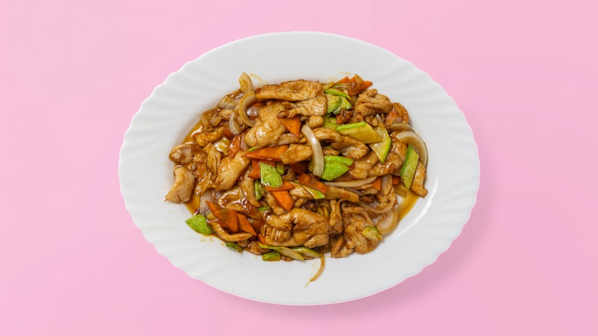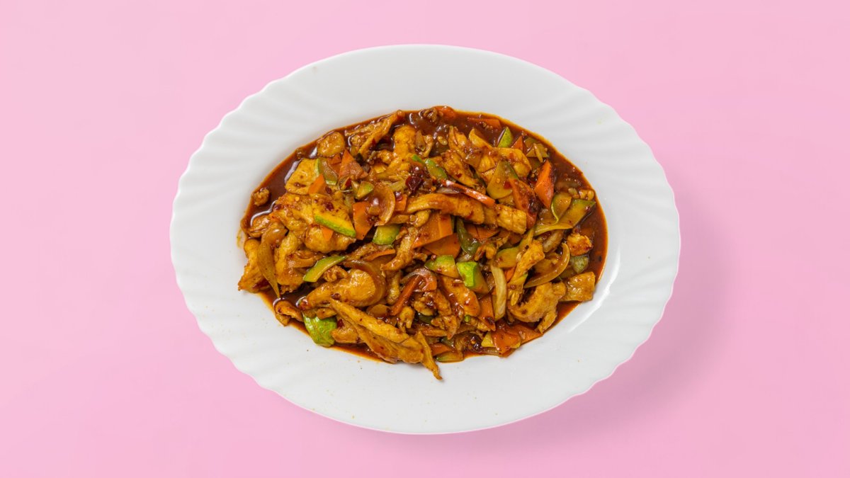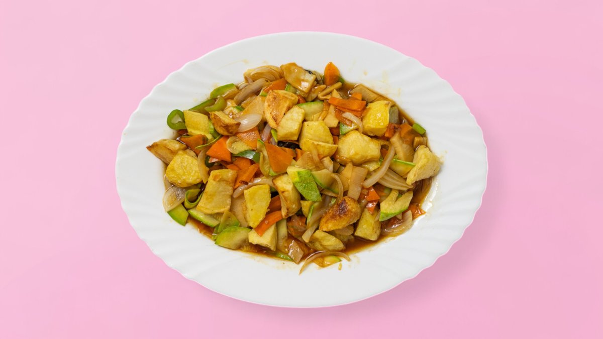 144. Пилешко в кисело-сладък-люто-солен сос и зеленчуци