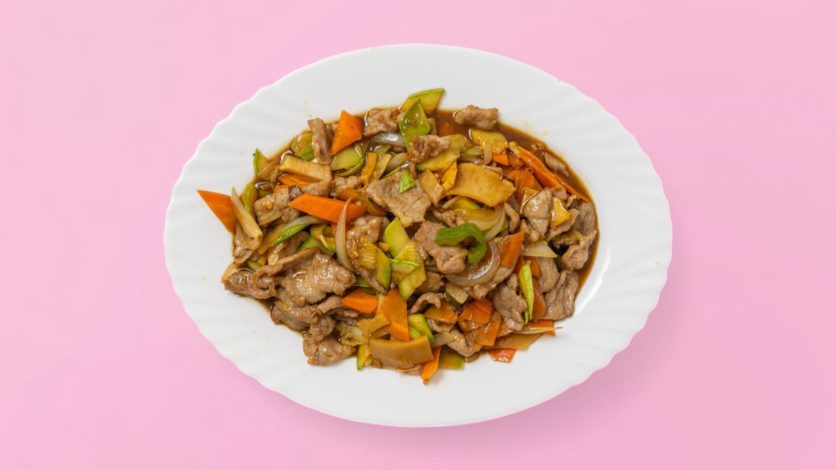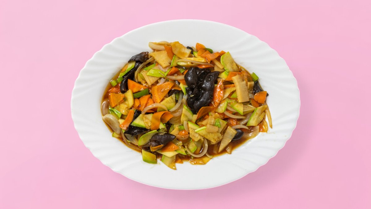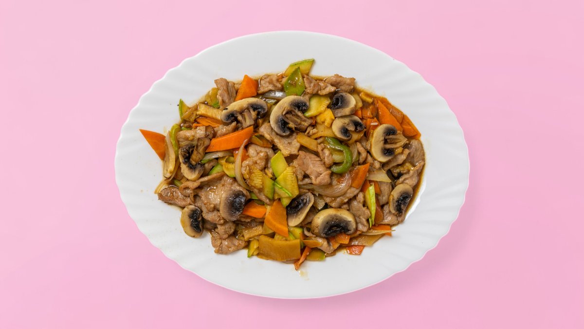 198. Пържени китайски гъби, бамбук и зеленчуци