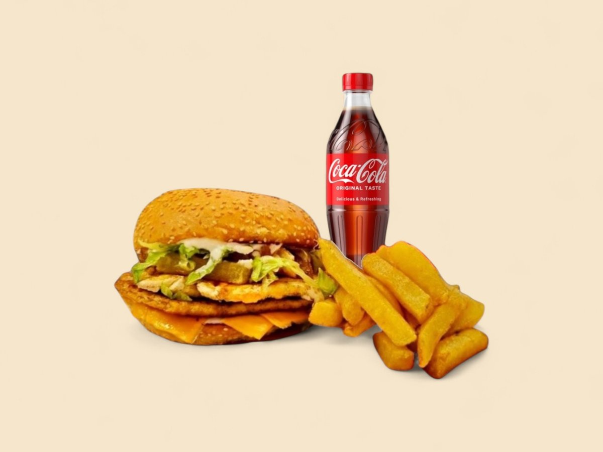 Комбо меню Пилешки бургер, картофи + Сoca-Cola