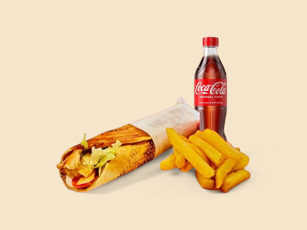 Комбо меню Голям пилешки дюнер, картофи + Сoca-Cola