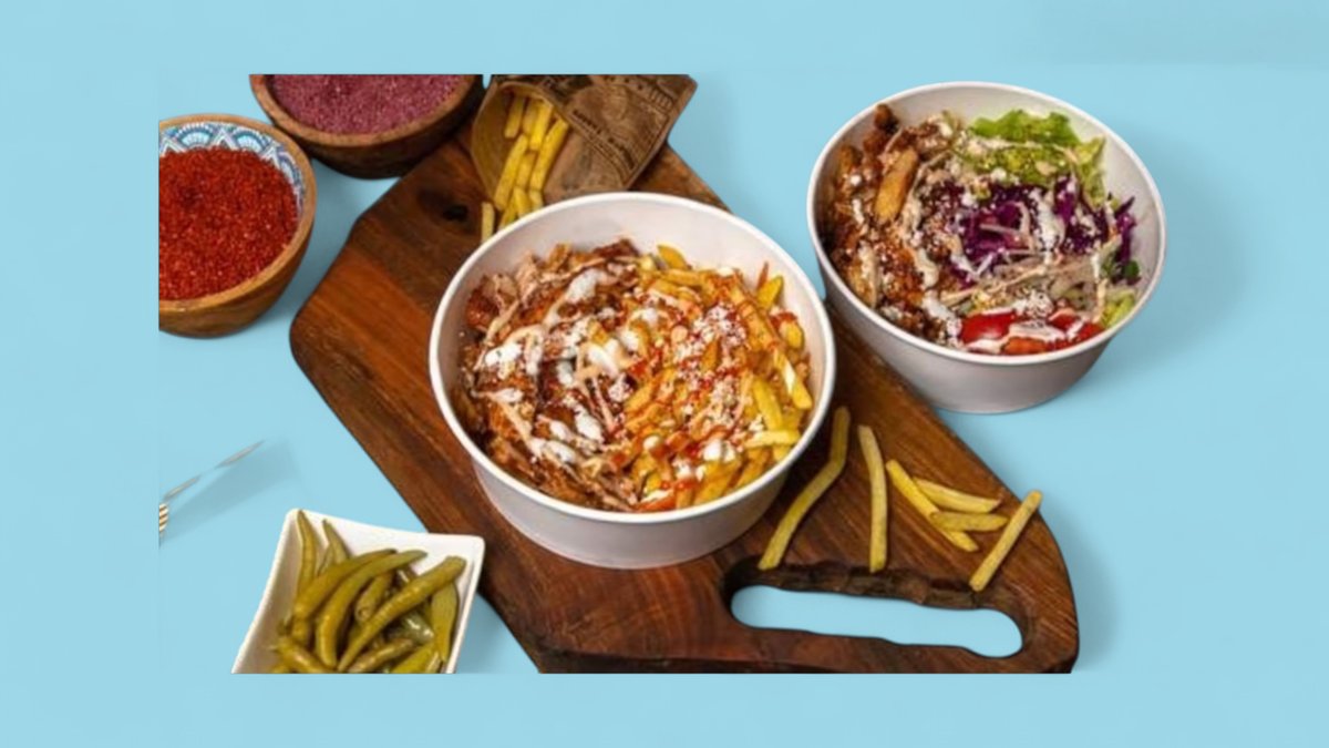 пилешко месо в наш стил, пържени до златисто тънки картофки, йогурт сос, donerman coc, тахини сос, сумак и много фета сирене, добавки по избор