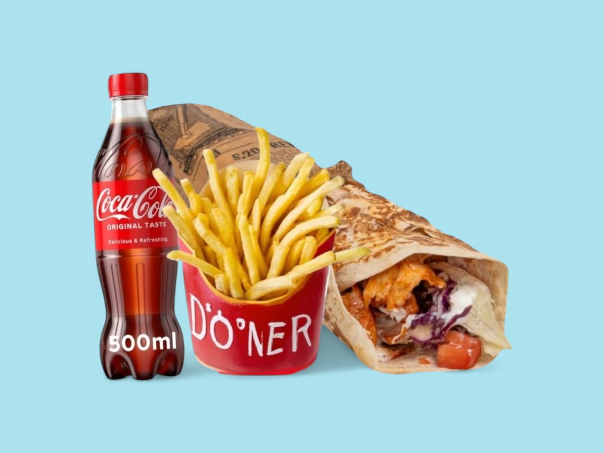 Комбо меню 🌯 Дюнер в лаваш, пържени картофи + Coca-Cola
