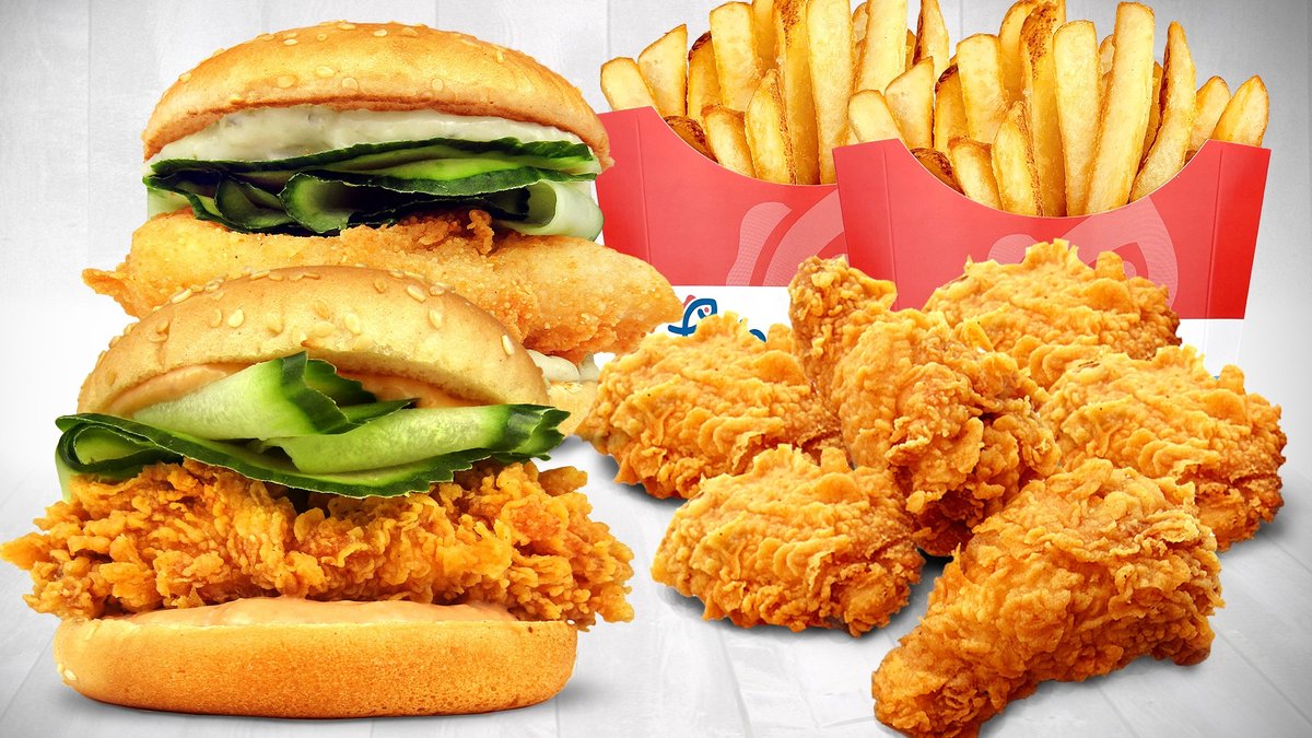 Беки бургер с пиле, сий фиш бургер с риба, 6 бр крила (класик или пикантни), малки картофки 2 бр