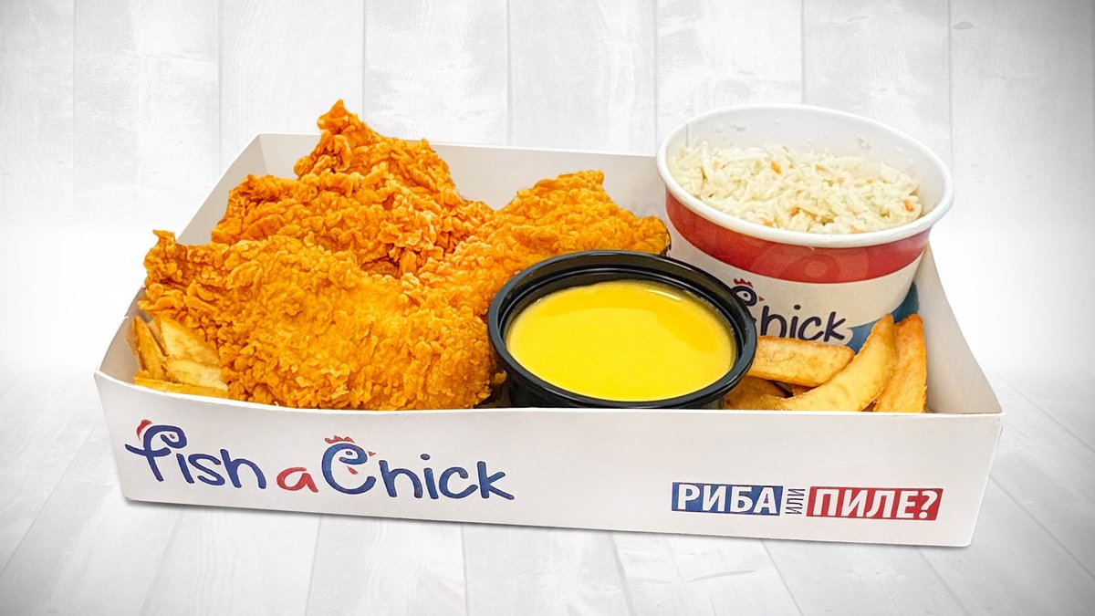сий фиш бургер или 2 бр фиш тендърс, сок, картофки + играчка 440г